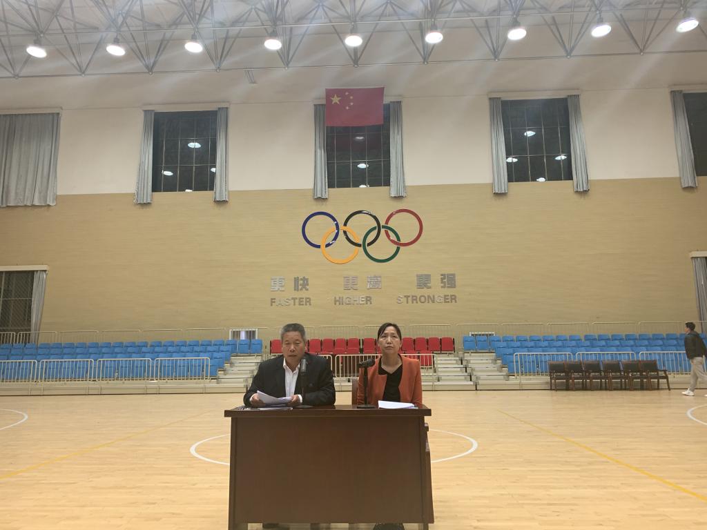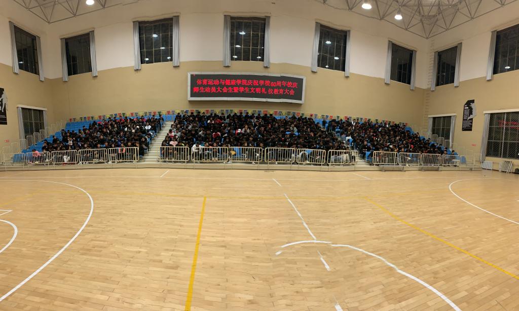 10月8日晚上7:30,304am永利集团官网在综合体育馆组织召开庆祝学校60周年校庆师生动员大会暨学生文明礼仪教育大会。体育学院领导班子成员、全体教职工及17级、18级、19级全体学生,共计600多人参加。会议由学院党总支副书记吴建全主持。