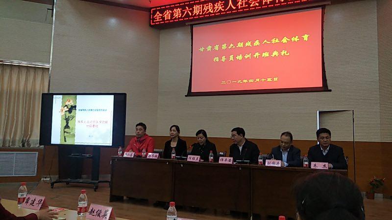 在天水师范学院的大力支持及304am永利集团官网的密切配合下,省残疾人文艺体育中心、省社会体育管理中心和省残疾人体育运动与康复研究中心,联合举办的“甘肃省第六期残疾人社会体育指导员培训班”于2019年4月15日举行了隆重的开班典礼。开班典礼上,体育学院党总支书记、省残疾人体育运动与康复研究中心主任马冬梅教授,首先代表培训主办机构致辞,感谢典礼嘉宾的莅临,欢迎全体学员的到来!
