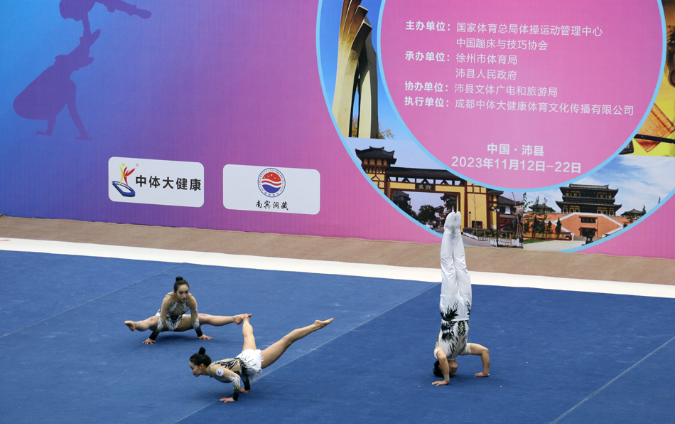 近日,2023年全国技巧冠军赛在徐州市沛县体育馆举行,来自江苏、浙江、广东、广西等15个省市的116支代表队共1303名选手参加比赛。