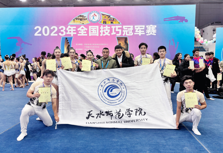 我校技巧代表队由2020级程茜茜、张新钰,2021级崔启南、王翰林、刘昌宇、孔子润,2022级李昊霖等7名运动训练专业学生组成,参加了混合三人、混合四人两个项目的比赛。经过激烈角逐,混合三人获得冠军,混合四人获得第二名,学校代表队获体育道德风尚奖,王翰林获个人体育道德风尚奖。